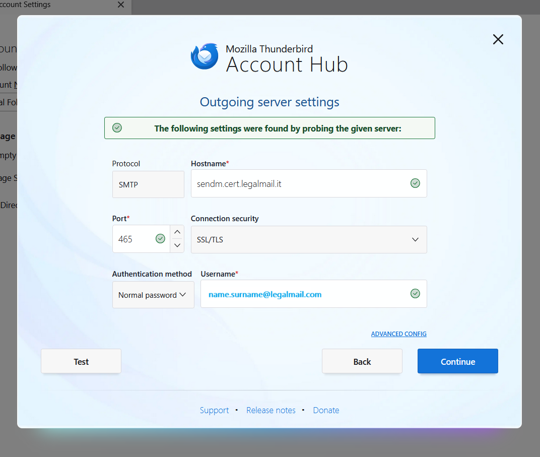 Before considering the configuration of the email complete, you could perform a quick test by sending a message to your own Certified Email (PEC) address.