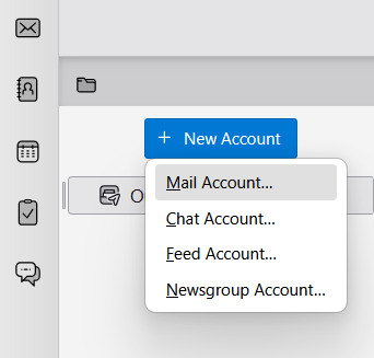 Proceed with the configuration by selecting New Account and then choosing Mail Account.