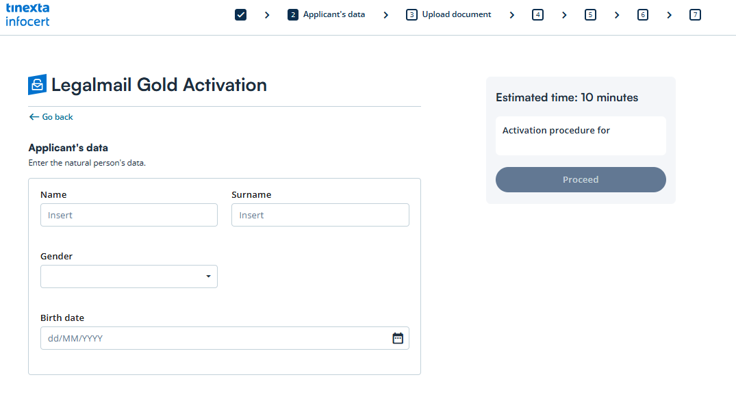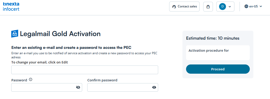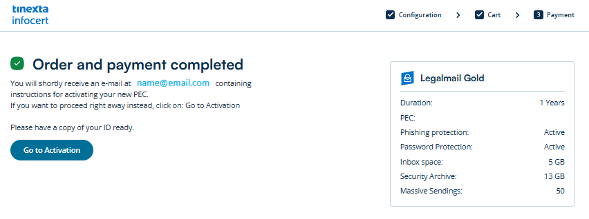 You can now proceed with the activation of your PEC mailbox.