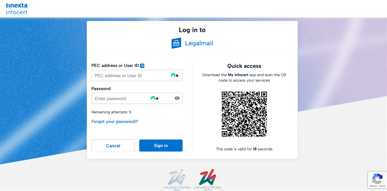 Please remember that for your first login to the Legalmail mailbox, you must use the temporary password that you provided during the activation request.