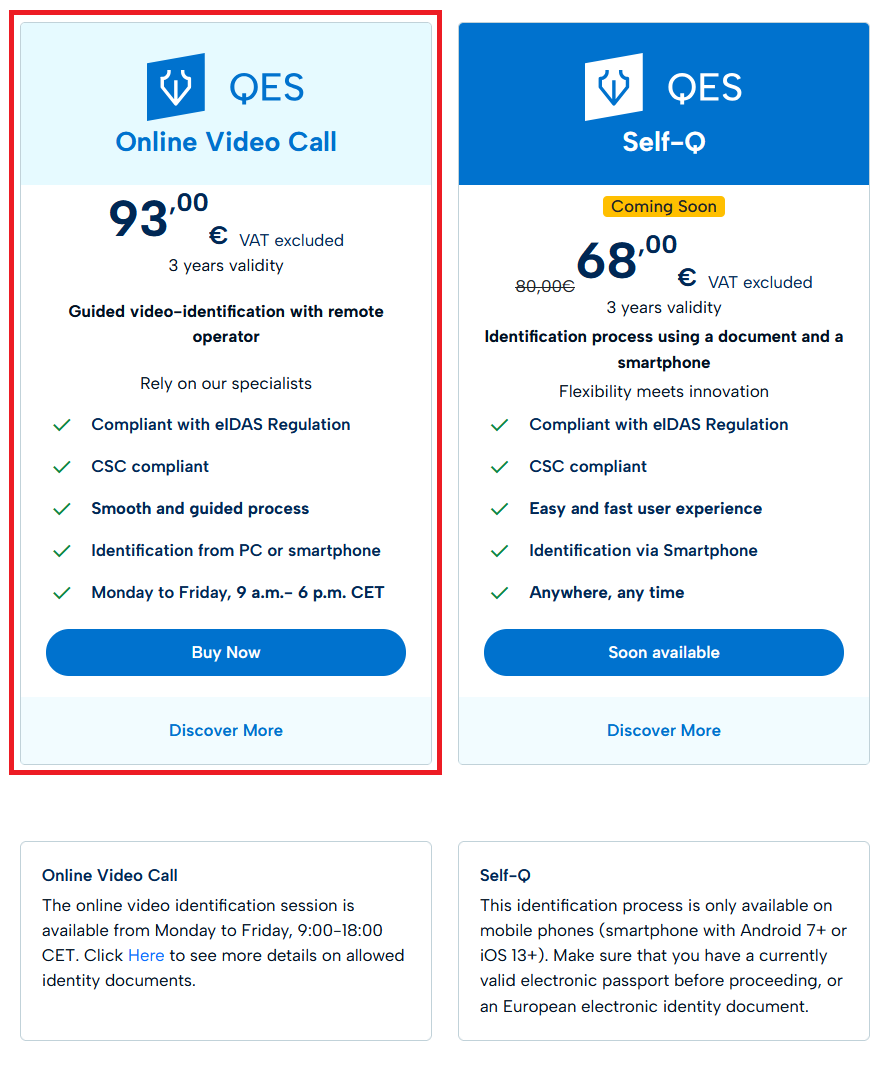 In the "Activation QES with Video ID" email you will find instructions for proceeding to the Identification phase with the Video Operator.